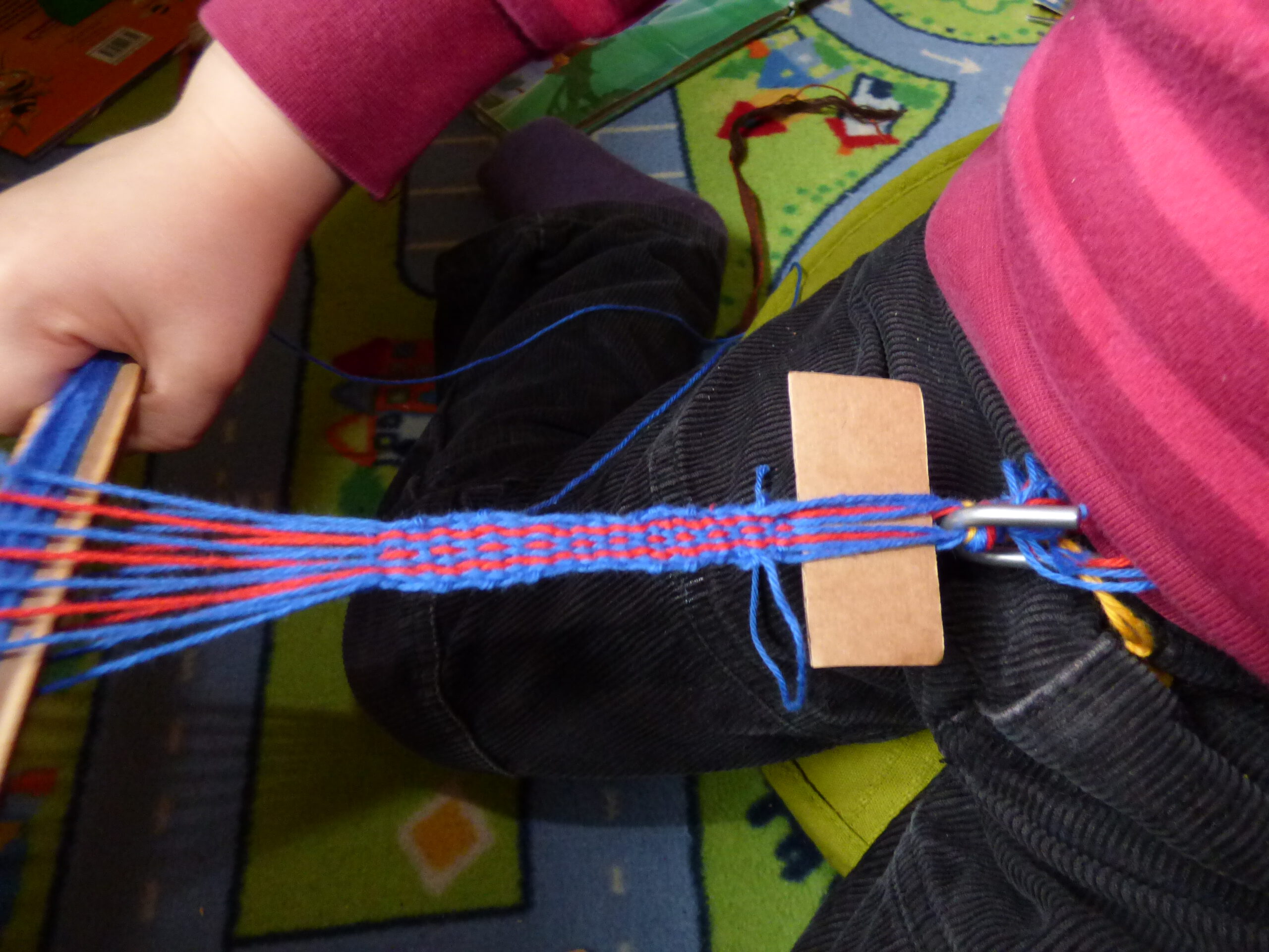 Kursbeschreibung: In diesem Kurs lernen wir die Grundtechnik des Bandwebens kennen. Nach einer kurzen theoretischen und praktischen Einführung in die Geschichte der Weberei weben wir selbst zwei Bänder: Eins in der Technik des Halbwebens und eins in echter Webtechnik mit einem Webkamm (auch Webgatter oder -brett genannt).