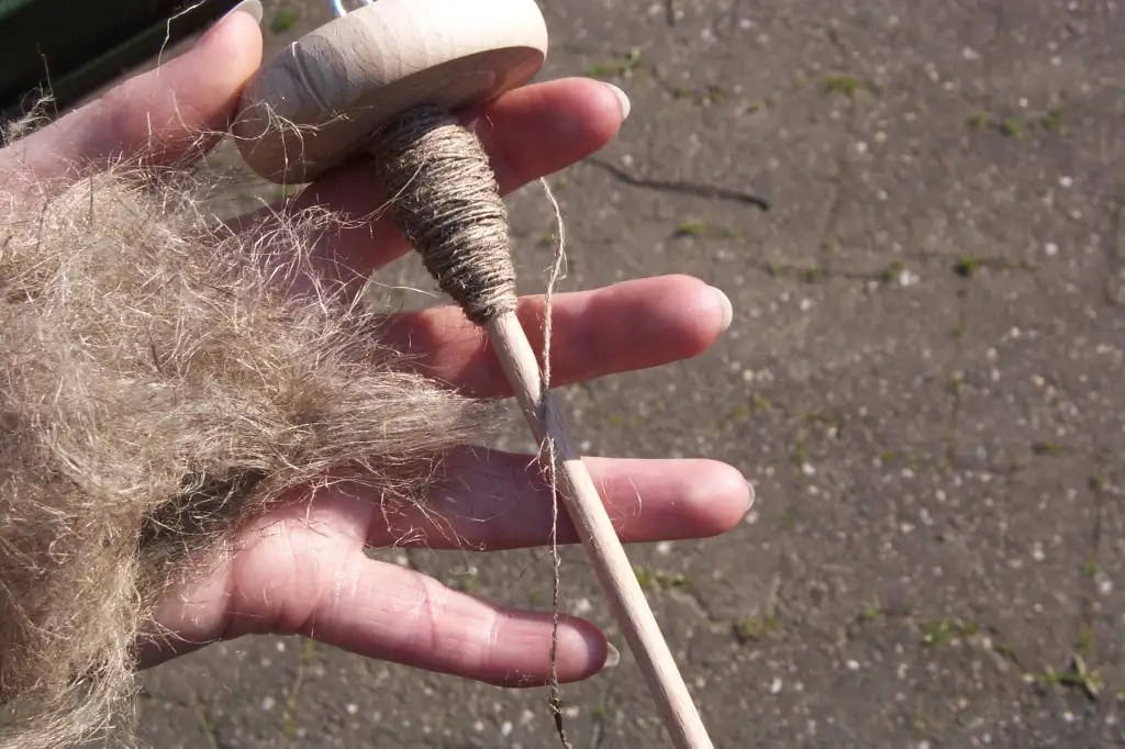 Dann nehmen wir einfachste Spinngeräte wie Stöcke und Steine zur Hilfe und tasten uns langsam an die geniale Erfindung der Handspindel heran. Die Spindel kombiniert Stock (Achse) und Stein (Schwunggewicht). Hier wurde erstmals in der Geschichte der Menschheit ein Gerät entwickelt, das mit einer (theoretisch) unendlichen Drehbewegung arbeitet – und das sicher viele Jahrtausende später eine Inspiration für die Erfindung des Rades war.